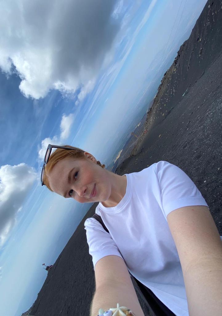 Korkeammalla tulivuorenrinnettä oli melko karua, lähinnä tuhkaa sekä hieman kovettunutta laavaa. Kävelimme hetken ympäriinsä ja katselimme maisemia. Oli hieman sumuista ja olimme niin korkealla, ettei näkymä ollut aivan parhaimmillaan. Nautimme myös kahvit ja leivokset pienessä tunnelmallisessa vuorikahvilassa. Yllättävää kyllä, tulivuoren rinteellä vipelsi kovasti leppäkerttuja, siis huomattavan paljon, ja ihmettelimme kovasti niiden määrää.