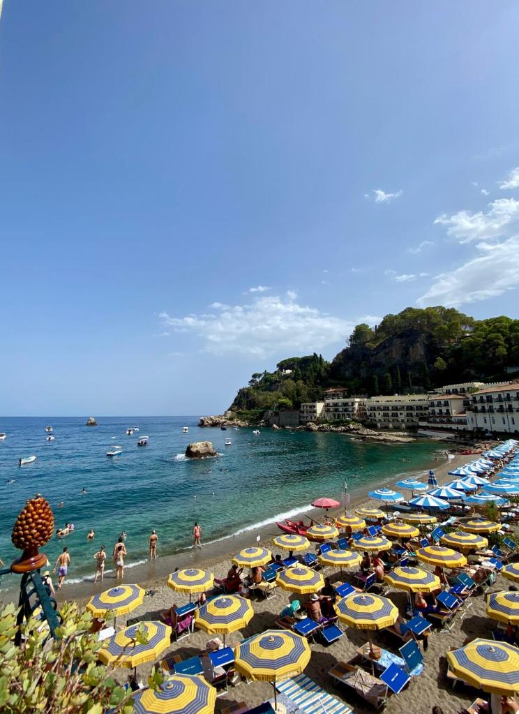 Vierailimme Taorminan läheisyydessä sijaitsevalla Mazzarò-rannalla, joka on todella suosittu ja usein täynnä ihmisiä. Aivan tämän rannan vieressä sijaitsee kaunis Isola Bella -saari sekä -ranta, jotka houkuttelevat kävijöitä, mukaan lukien myös meidät.