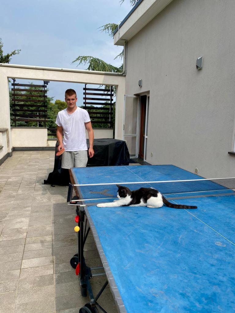 Talossa majailivat meidän lisäksemme myös kaksi kissaa, jotka olivat villan omistajan. Ne pyörivät jaloissamme tuon tuosta, ja niille löytyi villalta myös omat ruoat. Emme tietenkään voineet vastustaa kiusausta nimetä näitä karvakavereita, joten nimesimme ne tyylikkäästi Mersuksi ja Audiksi.