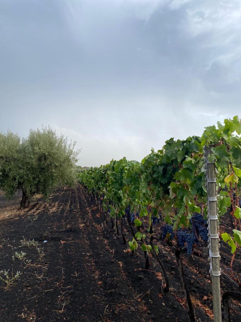 Italiassa kun kerran olimme, kävimme tietenkin myös viinimaistelussa viinitilalla nimeltään Tenuta Papale, joka sijaitsee Nicolosin läheisyydessä. Tenuta Papale on pieni ja tunnelmallinen 1950-luvulla perustettu viinitila. Pakettiimme kuului muutamia eri valko- ja punaviinejä, sekä lisäksi erilaisia leipätikkuja, kuskusia ja kaksi tapaslautasta. Tapakset olivat maukkaita, ja erityisesti valkoviinit olivat mieleeni. Henkilökunta oli todella ystävällistä, ja he kertoivat meille sekä tilan että Sisilian viiniviljelysten historiasta. Sateisen päivän vuoksi emme lähteneet kiertelemään viiniviljelyksillä, jotka ulottuivat pitkälle silmän kantamattomiin.