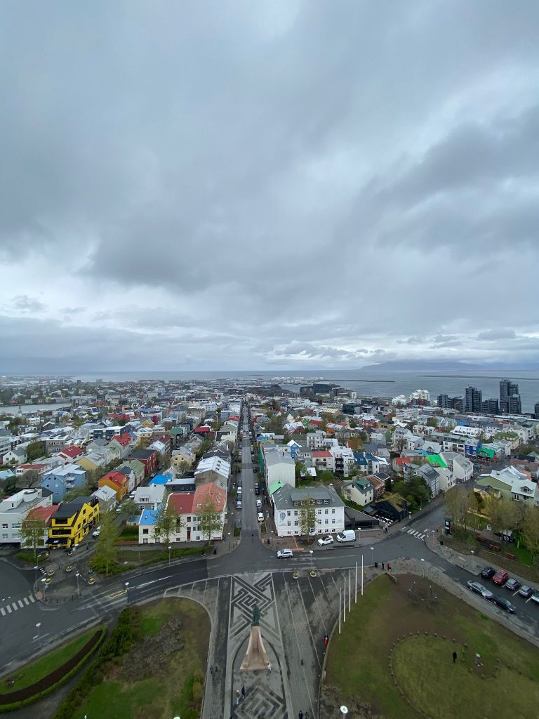Reykjavík, Islannin pääkaupunki, on tunnelmallinen ja värikäs kaupunki. Heti saavuttuamme lähdimme kiertelemään kaupungissa, jonka keskusta-alueen läpi käyminen kävi helposti jalkaisin. Kuljimme sateenkaarikatua pitkin Hallgrímskirkjalle, joka on yksi kaupungin tunnetuimmista nähtävyyksistä. Kirkkoon ei ollut pääsymaksua, mutta sen huipulla oli näköalapaikka, jonne nouseminen maksoi aikuiselta noin kymmenen euroa. Näköalapaikka oli oikeastaan vain tuulinen pelkistetty tasanne, mutta maisemat olivat kauniit ja ylettivät kauas Reykjavíkin ylle.