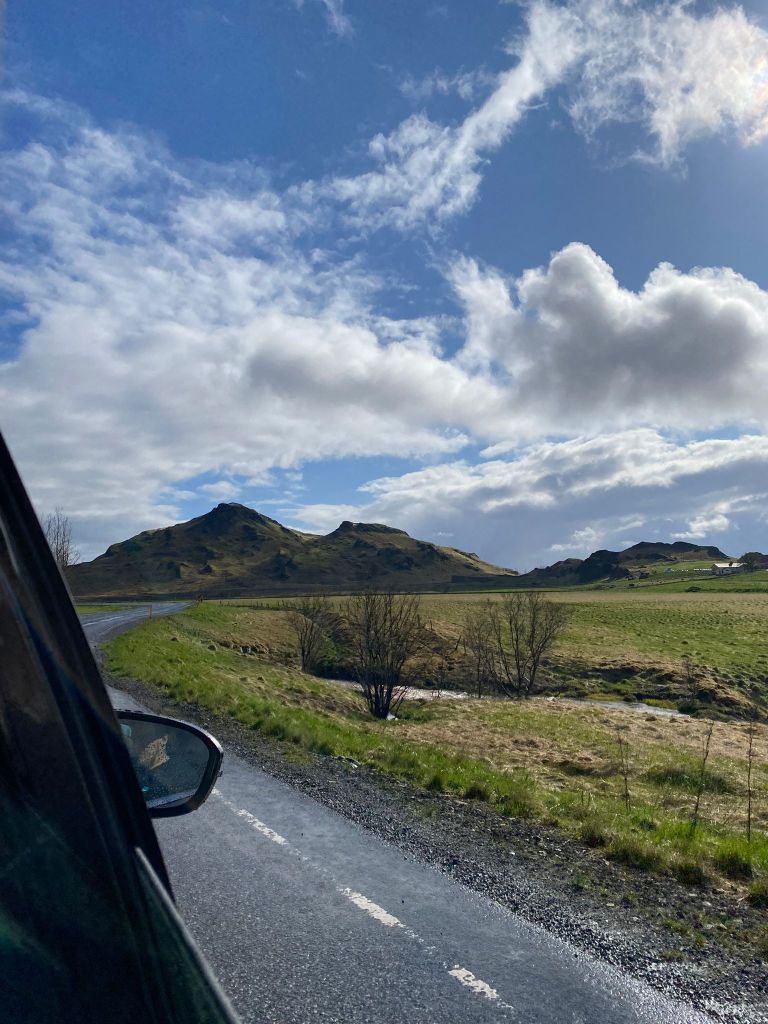 Maisema Islannissa oli hyvin suurilta osin karua, ja esimerkiksi puita näkyi joskus siellä täällä todella vähän. Menomatkalla taustalla siinsivät jylhät vuoret, mutta muuten kasvillisuus oli vähäistä, ja niukkakasvuista maisemaa jatkui silmän kantamattomiin.