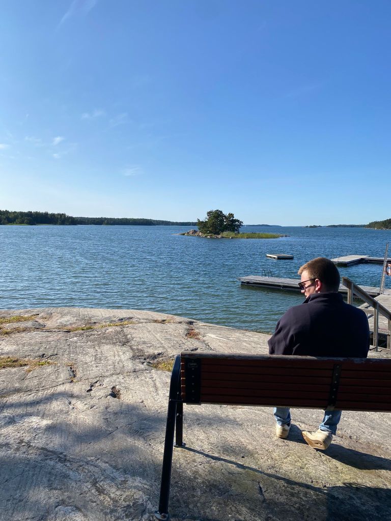 Aloitimme reitin ajamalla Turun kautta Paraisille, josta puolestaan jatkoimme lautalla Nauvoon. Ajomatkamme kotoa alkaen kesti noin kaksi ja puoli tuntia, joten ehdin apukuskina ottaa matkalla pienet päikkärit. Maisema muuttuu jo Paraisille ajettaessa huomattavasti, ja auton ikkunasta pystyy ihailemaan kimmeltävää merimaisemaa useasti siltojen päältä.
